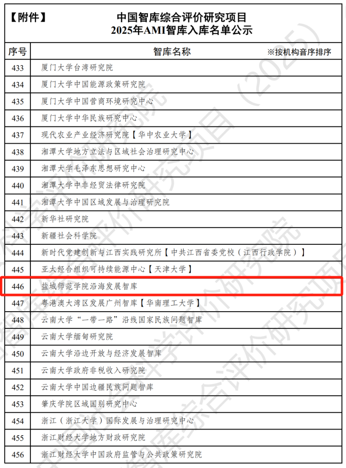 喜报!沿海发展智库 成功入选“2025年AMI智库入库单位”